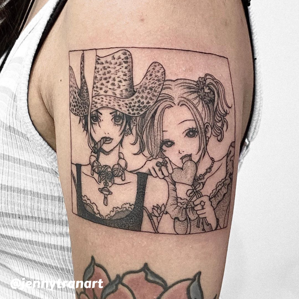 Anime as a genre, however, didn’t become prominent until the 20th century. Post-World War II Japan saw an explosion in creative media, with manga and anime emerging as key forms of expression. Influential works like Astro Boy by Osamu Tezuka in the 1960s popularized manga and anime with unique visual language—large expressive eyes, exaggerated facial expressions, and stylized characters—that would become the genre’s defining features. As the genre grew in popularity, anime began to influence various forms of art, including tattooing.