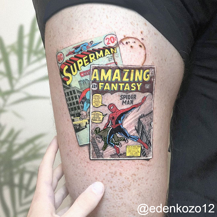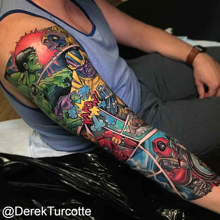 This style often works best on medium to large areas like forearms, thighs, chests, or calves, giving the design space to breathe and move. Whether a single dynamic character or a full narrative sleeve, comic tattoos benefit from strong composition and a clear visual flow.