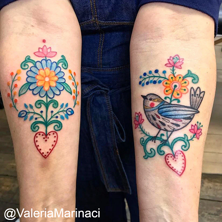 Folk art tattoos are a celebration of culture, storytelling, and handmade beauty. This style draws inspiration from the traditional crafts, patterns, and symbols passed down through generations across communities around the world. It is colorful, sincere, and deeply connected to identity — a style that wears history and heart right on the skin.