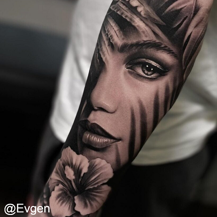 Both black and gray and full color are used in photo realism tattoos. Black and gray designs emphasize mood, contrast, and depth. Color photo realism captures every tone and hue exactly as it appears in the original reference — from subtle skin tones and glossy eyes to metallic reflections or vibrant natural elements.
