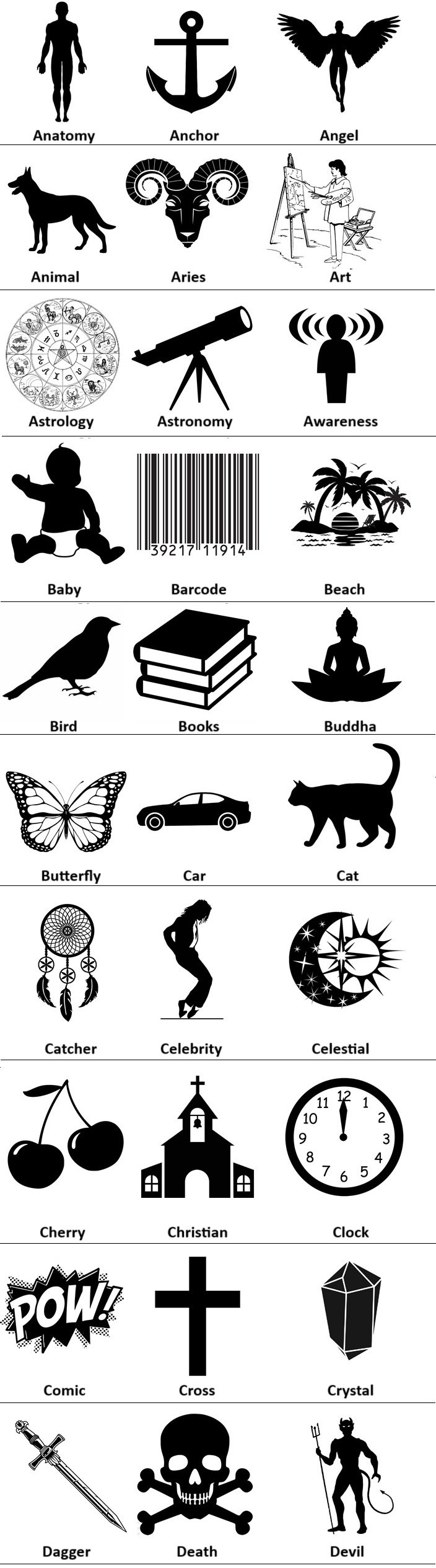 Below are over 100 Subject images to help you decide what your next Tattoo will represent!